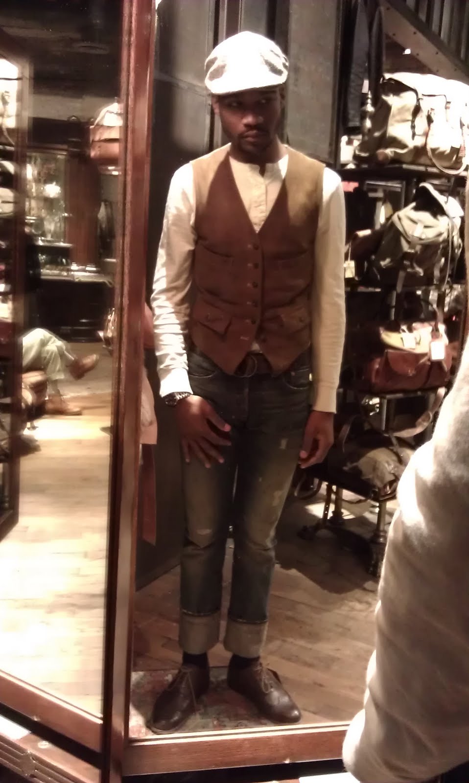 I saw him while shopping in SOHO. Retro with a modern edge is what’s so fresh! There is constantly so much material for me to use in NYC. (In this sense, “material” meaning my subjects.) But what always really draws me and intrigues me to photograph and write about is when I see men dressed with meaning.