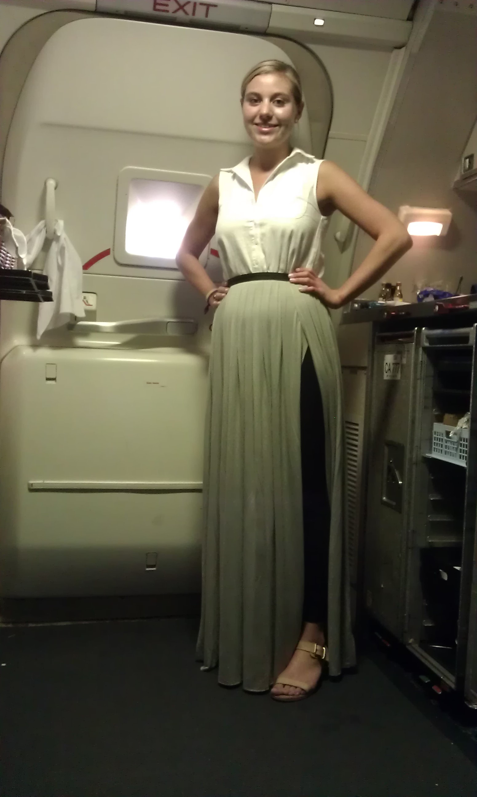 I think everyone including our uptight purser noticed Natalie in her flowing maxi-skirt with slits paired with leggings and her sweet sleeveless blouse tucked in. It was travel perfected, beautifully.